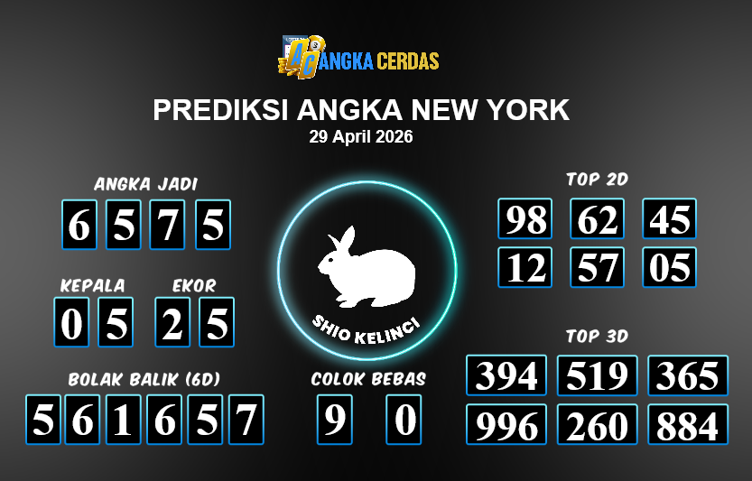 Prediksi Togel NEW YORK untuk hari ini Rabu, 29 April 2026, adalah salahsatu jenis togel yang memiliki banyak penggemar.Ini terutama ditujukanbagi Anda yang menyukai 4d/3d/2d. Prediksi Angka Cerdas yang kamisediakan,bisa
