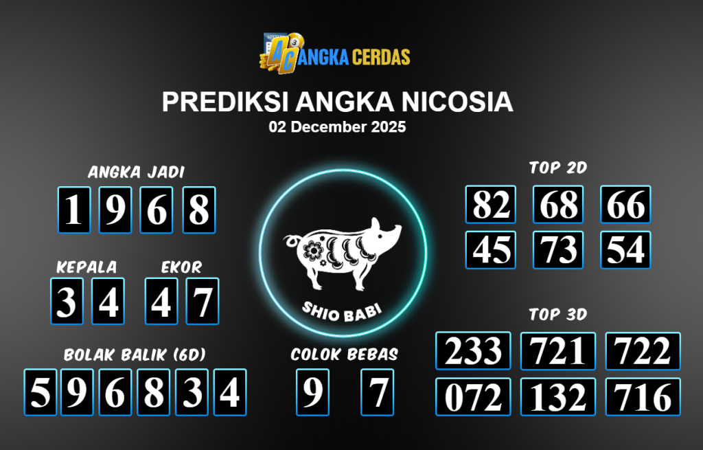 Prediksi Togel NICOSIA untuk hari ini Selasa 02 Desember November 2025, adalah salah