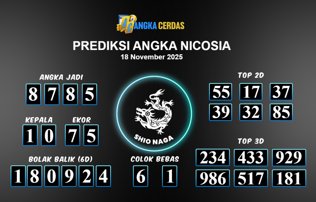Prediksi Togel NICOSIA untuk hari ini Selasa 18 November 2025, adalah salah