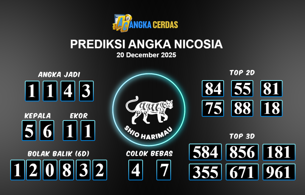 Prediksi Togel NICOSIA untuk hari ini Sabtu 20 Desember November 2025, adalah salah