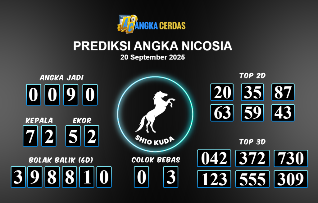 Prediksi Togel NICOSIA untuk hari ini Sabtu 20 September 2025, adalah salah