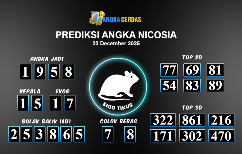 Prediksi Togel NICOSIA untuk hari ini Senin 22 Desember November 2025, adalah salah