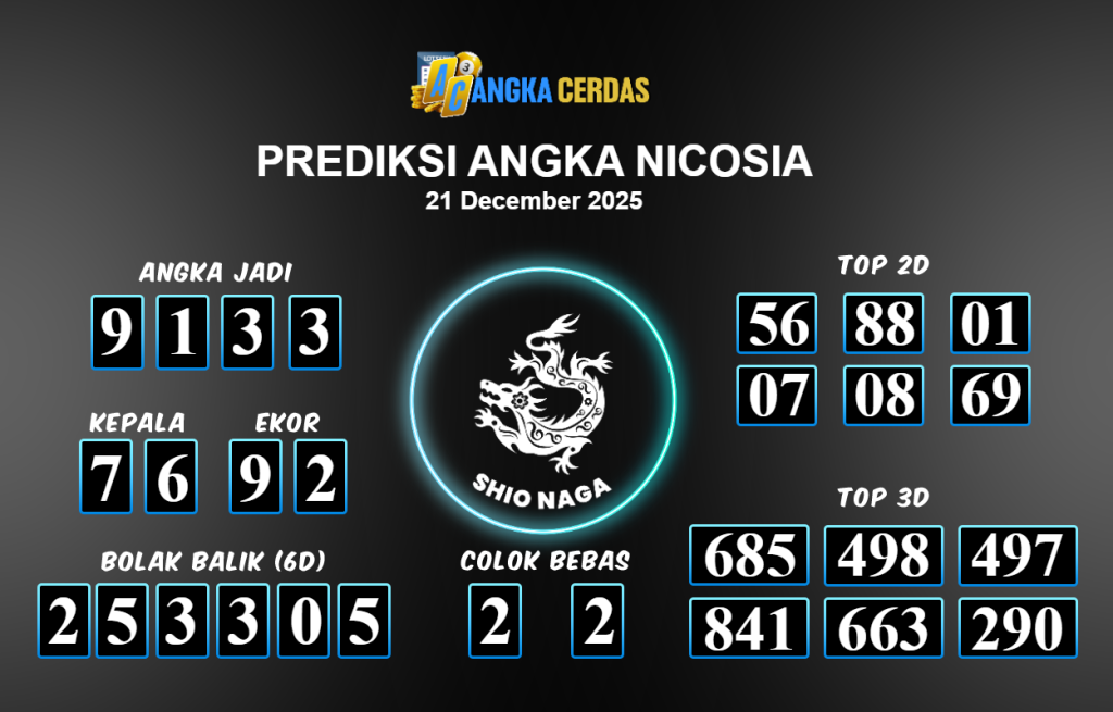 Prediksi Togel NICOSIA untuk hari ini Minggu 21 Desember November 2025, adalah salah