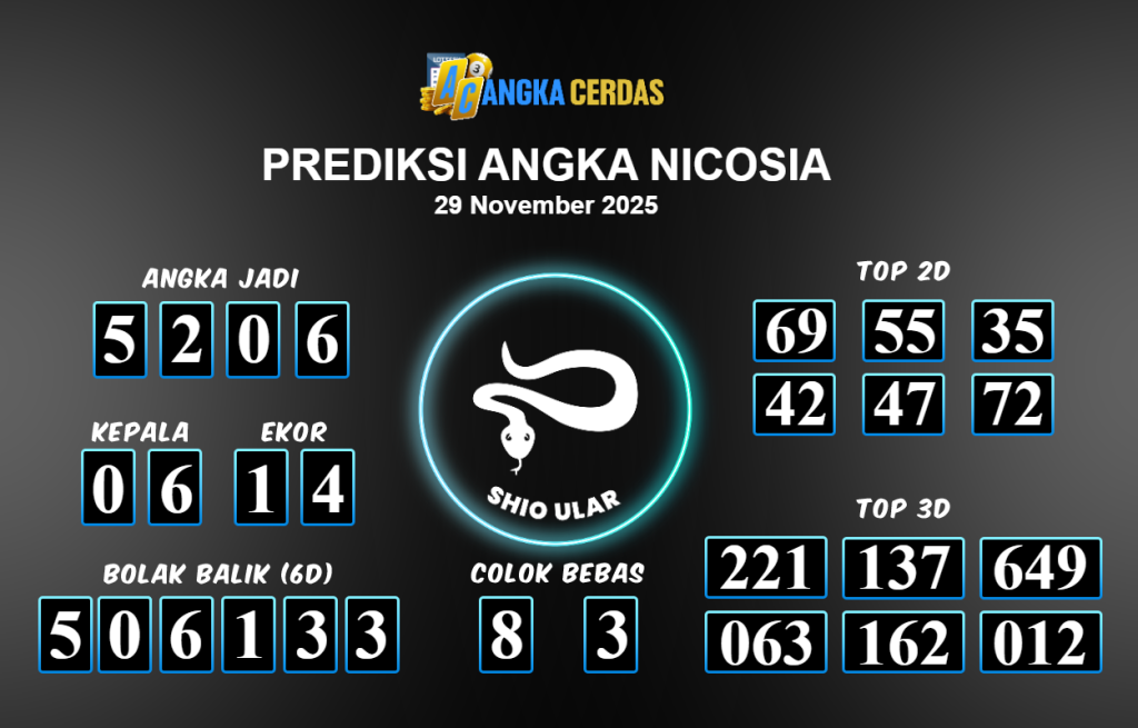 Prediksi Togel NICOSIA untuk hari ini Sabtu 29 November 2025, adalah salah