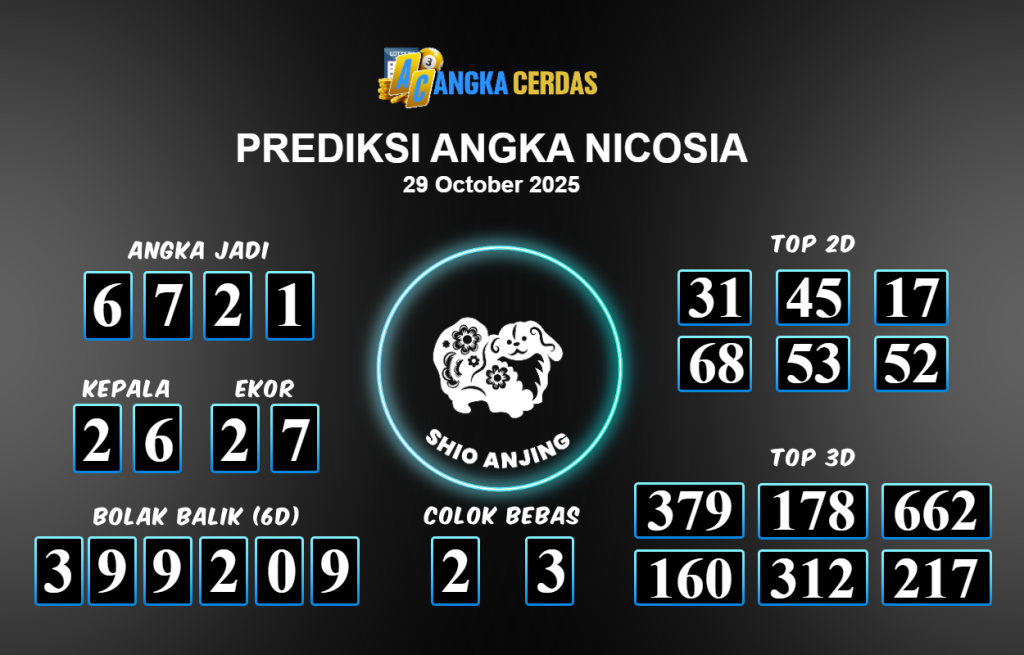Prediksi Togel NICOSIA untuk hari ini Rabu 29 Oktober 2025, adalah salah