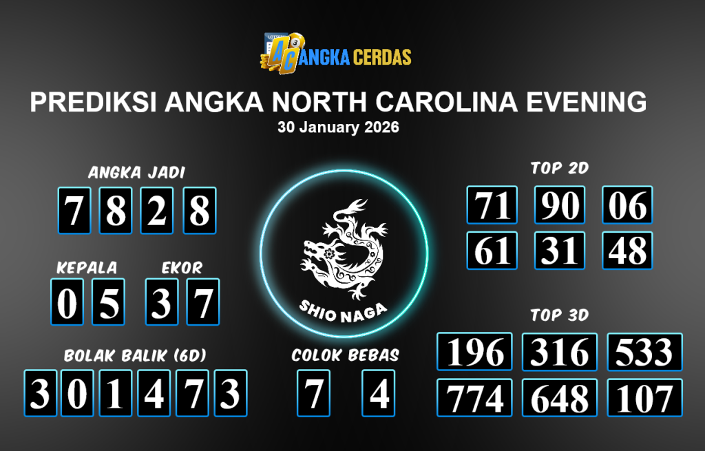 Prediksi Togel NORTH CAROLINA EVENING untuk hari ini Jumat 30 Januari 2026,adalah salah