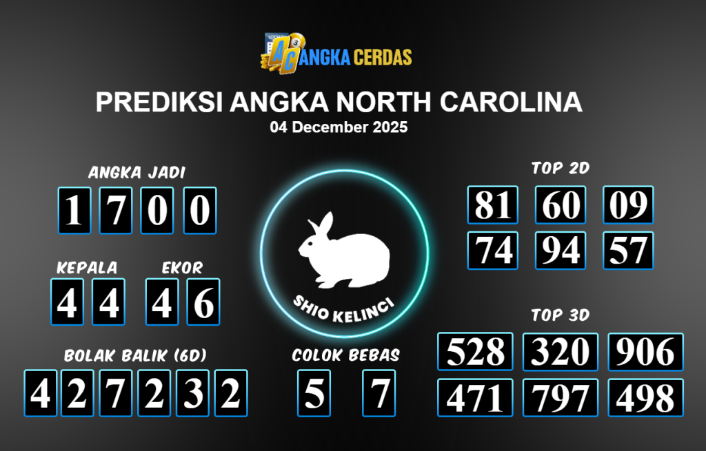 Prediksi Togel NORTH CAROLINA untuk hari ini Kamis 04 Desember November 2025, adalah salah