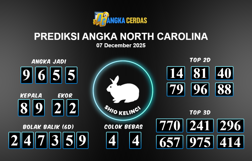 Prediksi Togel NORTH CAROLINA untuk hari ini Minggu 07 Desember November 2025, adalah salah
