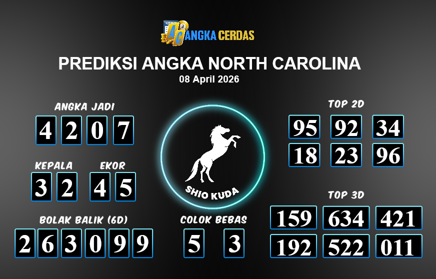 Prediksi Togel NORTH CAROLINA untuk hari ini Rabu, 08 April 2026, adalah salah