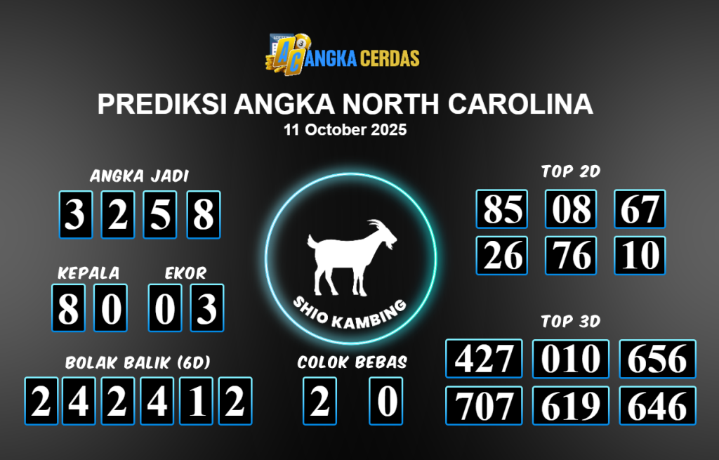 Angka Cerdas : Bocoran Prediksi Togel NORTH CAROLINA Tanggal 11 Oktober 2025