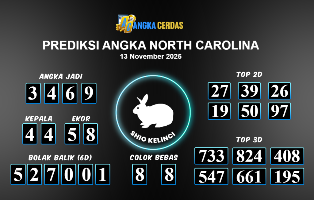 Prediksi Togel NORTH CAROLINA untuk hari ini Kamis 13 November 2025, adalah salah