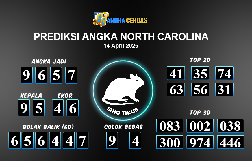 Prediksi Togel NORTH CAROLINA untuk hari ini Selasa, 14 April 2026, adalah salah