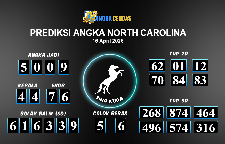 Prediksi Togel NORTH CAROLINA untuk hari ini Kamis, 16 April 2026, adalah salah