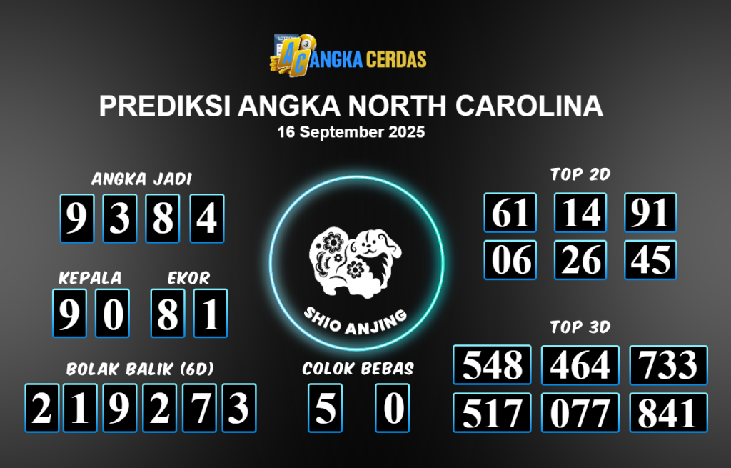 Prediksi Togel NORTH CAROLINA untuk hari ini Selasa 16 September 2025, adalah salah