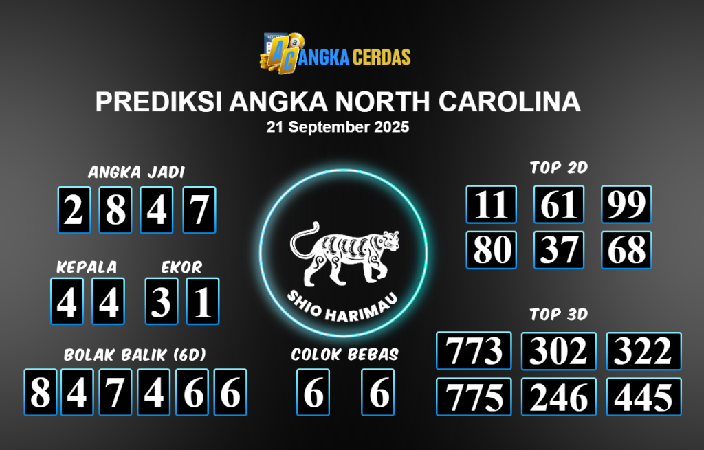 Prediksi Togel NORTH CAROLINA untuk hari ini Minggu 21 September 2025, adalah salah
