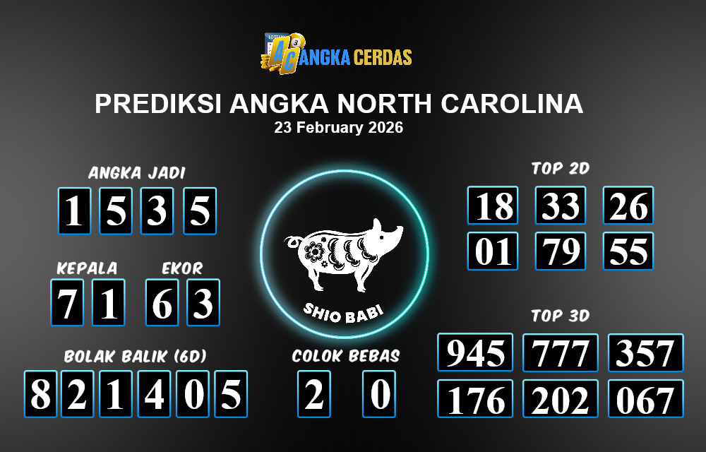 Prediksi Togel NORTH CAROLINA untuk hari ini Senin, 23 Februari 2026, adalah salah