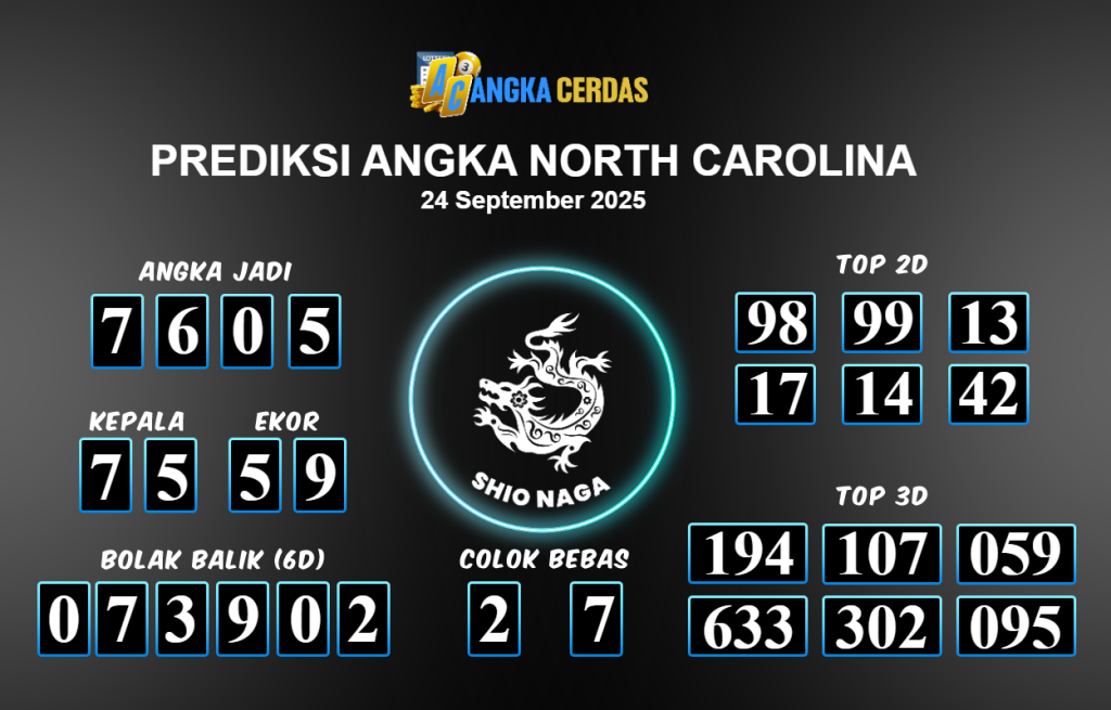 Prediksi Togel NORTH CAROLINA untuk hari ini Rabu 24 September 2025, adalah salah