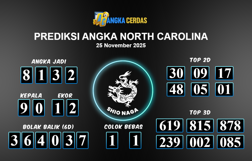 Prediksi Togel NORTH CAROLINA untuk hari ini Selasa 25 November 2025, adalah salah