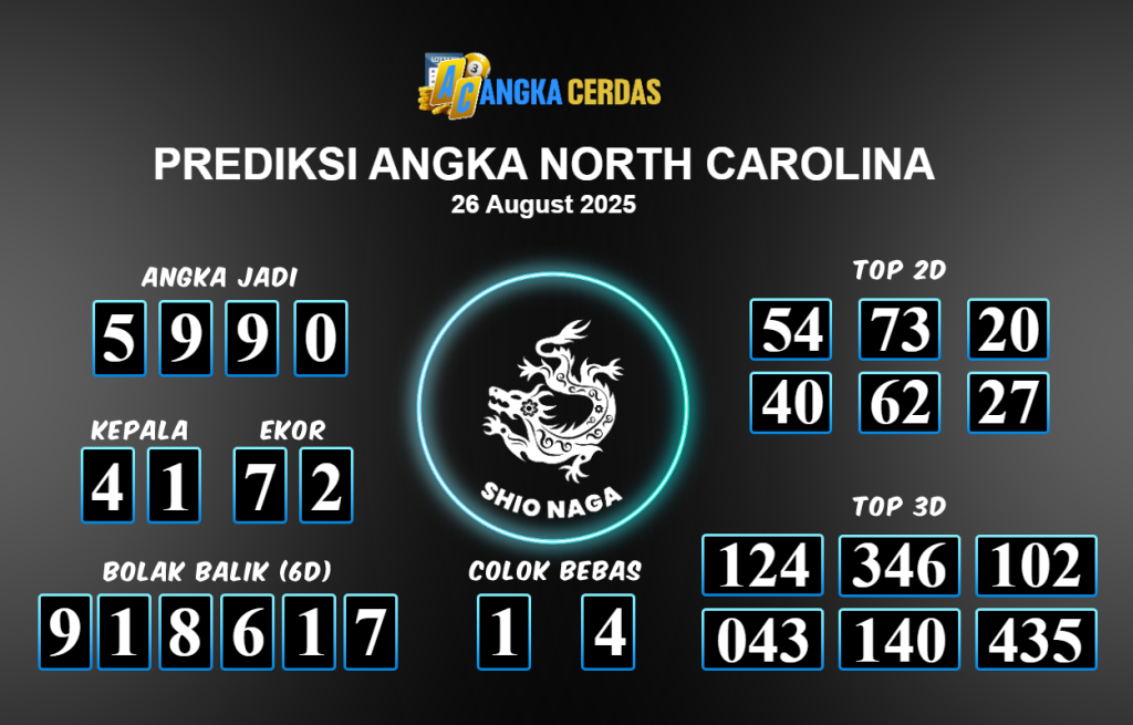 Prediksi Togel NORTH CAROLINA untuk hari ini Selasa 26 Agustus 2025, adalah salah