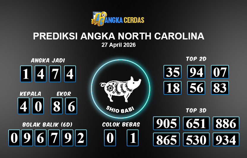 Prediksi Togel NORTH CAROLINA untuk hari ini Senin, 27 April 2026, adalah salahsatu jenis togel yang memiliki banyak penggemar.Ini terutama ditujukanbagi Anda yang menyukai 4d/3d/2d. Prediksi Angka Cerdas yang kamisediakan,bisa