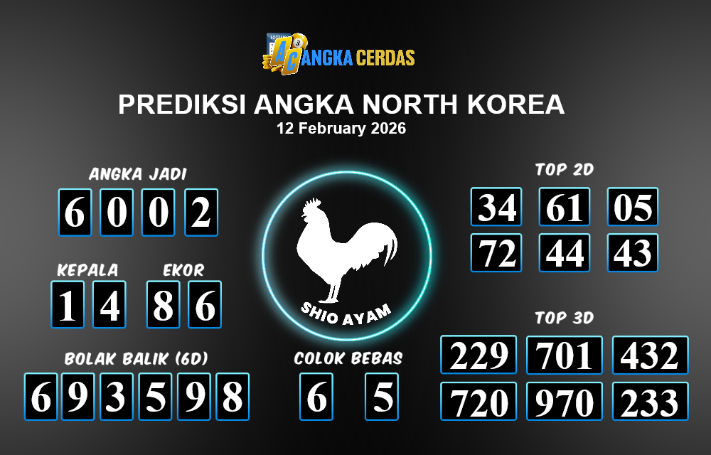 Prediksi Togel NORTH KOREA untuk hari ini Kamis, 12 Februari 2026, adalah salah