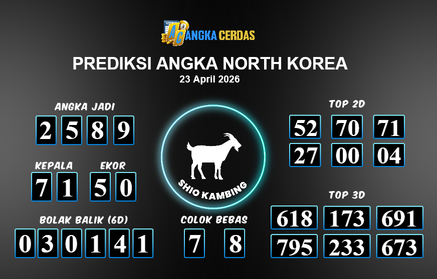 Prediksi Togel NORTH KOREA untuk hari ini Kamis, 23 April 2026, adalah salahsatu jenis togel yang memiliki banyak penggemar.Ini terutama ditujukanbagi Anda yang menyukai 4d/3d/2d. Prediksi Angka Cerdas yang kamisediakan,bisa