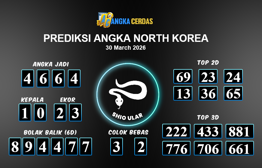 Prediksi Togel NORTH KOREA untuk hari ini Senin, 30 Maret 2026, adalah salah