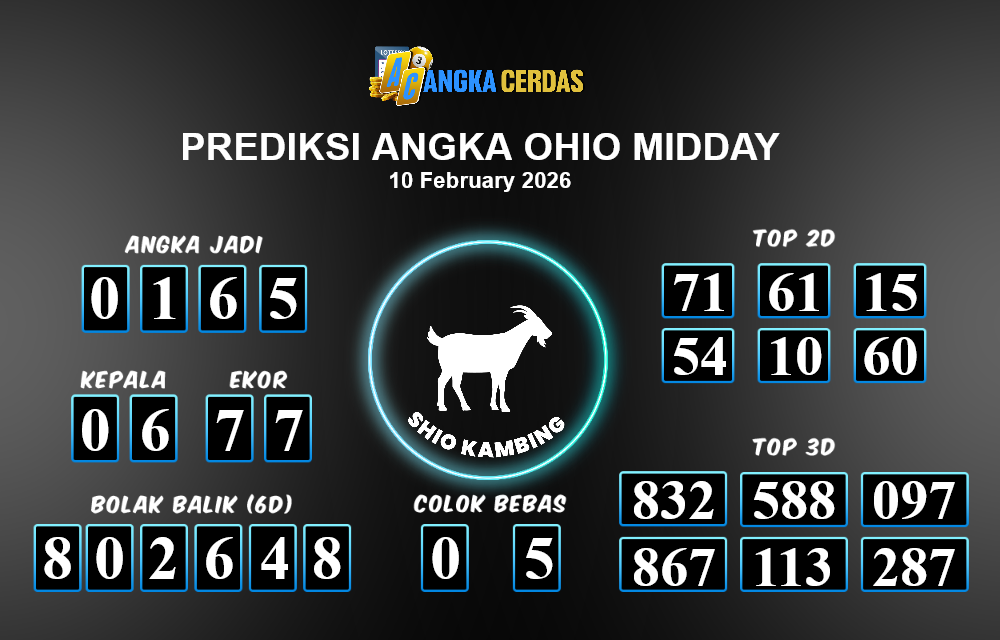 Prediksi Togel OHIO MIDDAY untuk hari ini Selasa, 10 Februari 2026, adalah salah