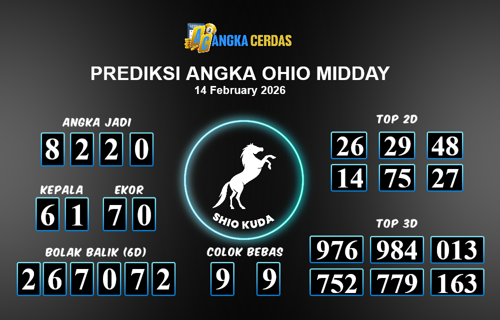 Prediksi Togel OHIO MIDDAY untuk hari ini Sabtu, 14 Februari 2026, adalah salah