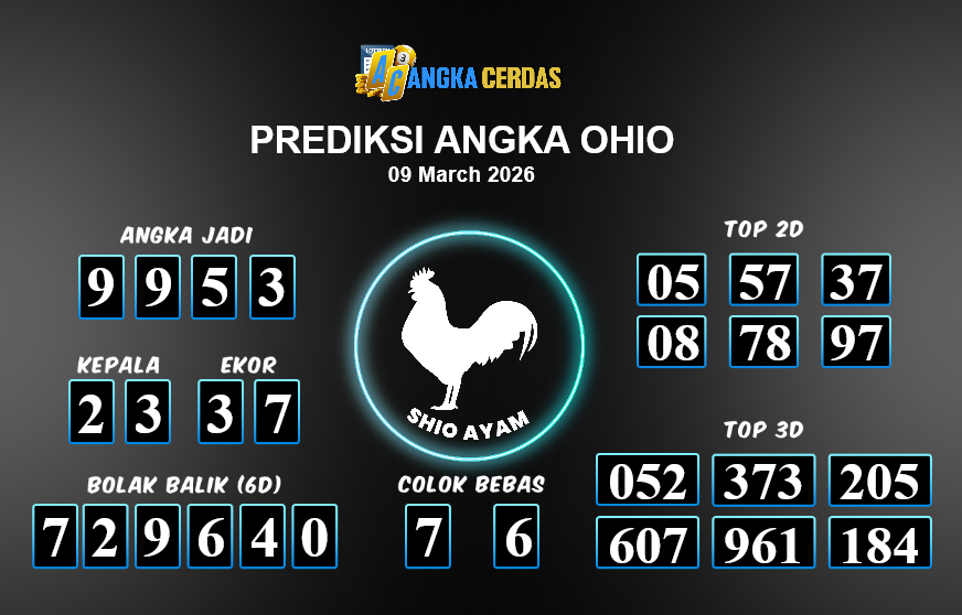 Prediksi Togel OHIO untuk hari ini Senin, 09 Maret 2026, adalah salah