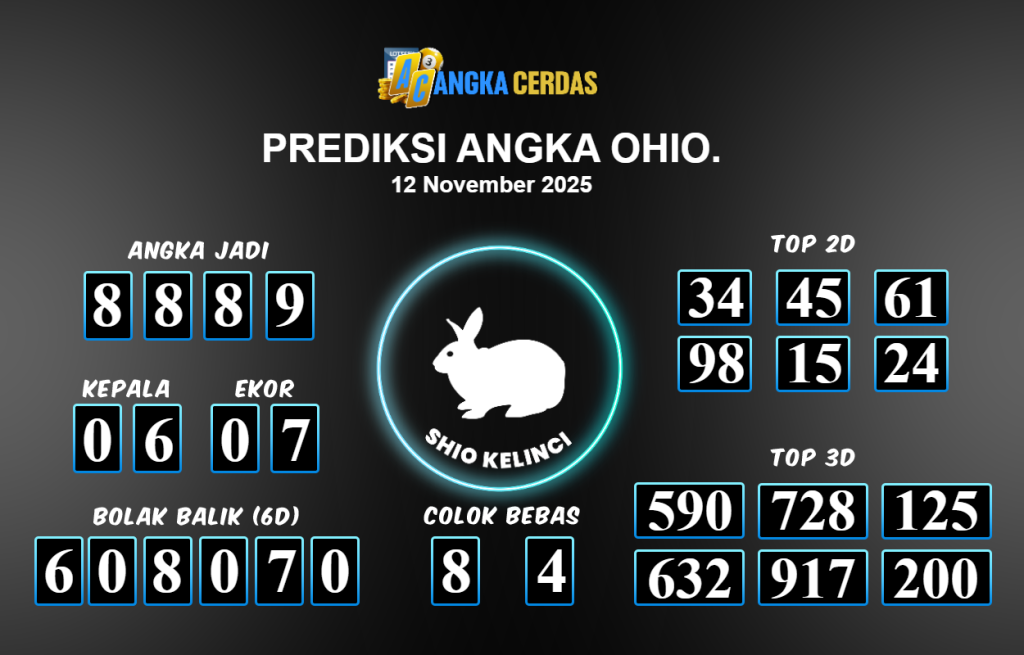 Prediksi Togel OHIO untuk hari ini Rabu 12 November 2025, adalah salah