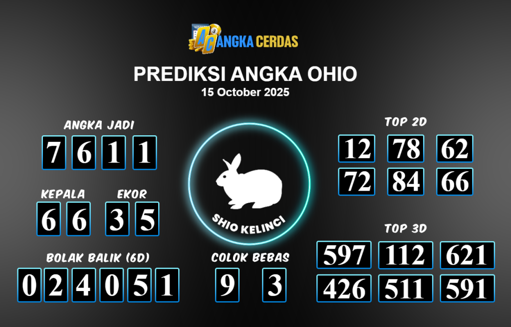 Prediksi Togel OHIO untuk hari ini Rabu 15 Oktober 2025, adalah salah
