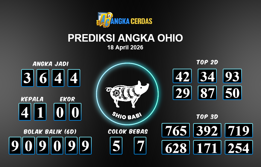 Prediksi Togel OHIO untuk hari ini Sabtu, 18 April 2026, adalah salahsatu jenis togel yang memiliki banyak penggemar.Ini terutama ditujukanbagi Anda yang menyukai 4d/3d/2d. Prediksi Angka Cerdas yang kamisediakan,bisa