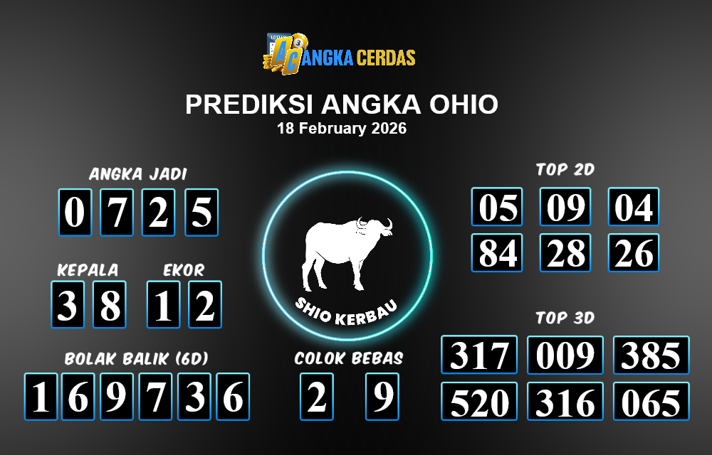 Prediksi Togel OHIO untuk hari ini Rabu, 18 Februari 2026, adalah salah