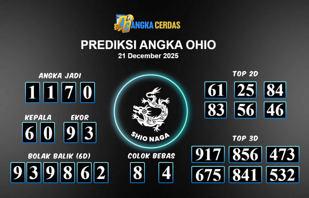 Prediksi Togel OHIO untuk hari ini Minggu 21 Desember November 2025, adalah salah