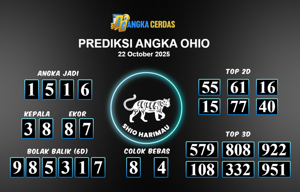 Prediksi Togel OHIO untuk hari ini Rabu 22 Oktober 2025, adalah salah