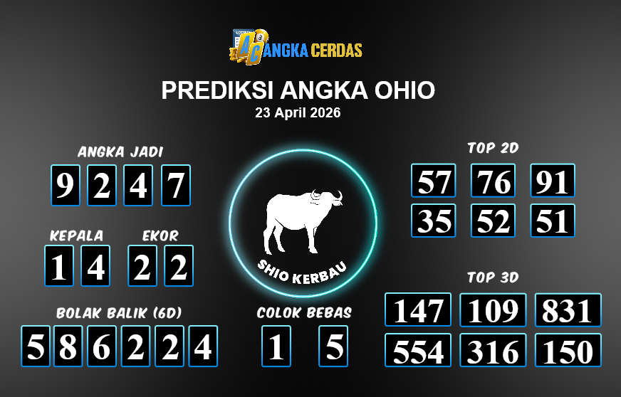 Prediksi Togel OHIO untuk hari ini Kamis, 23 April 2026, adalah salahsatu jenis togel yang memiliki banyak penggemar.Ini terutama ditujukanbagi Anda yang menyukai 4d/3d/2d. Prediksi Angka Cerdas yang kamisediakan,bisa