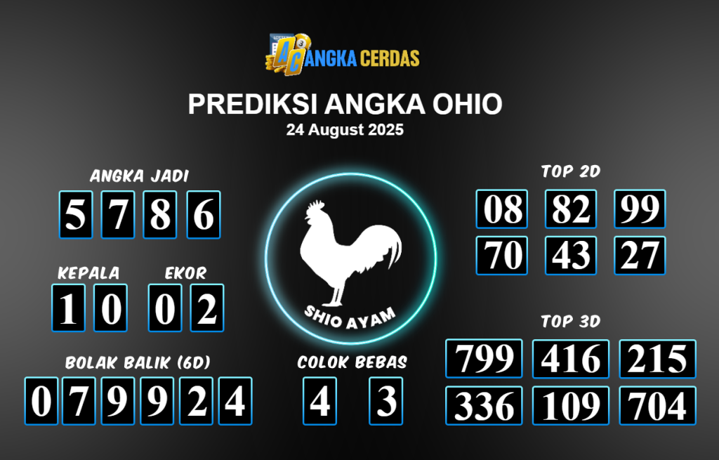 Prediksi Togel OHIO untuk hari ini Minggu 24 Agustus 2025, adalah salah