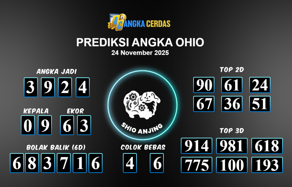 Prediksi Togel OHIO untuk hari ini Senin 24 November 2025, adalah salah