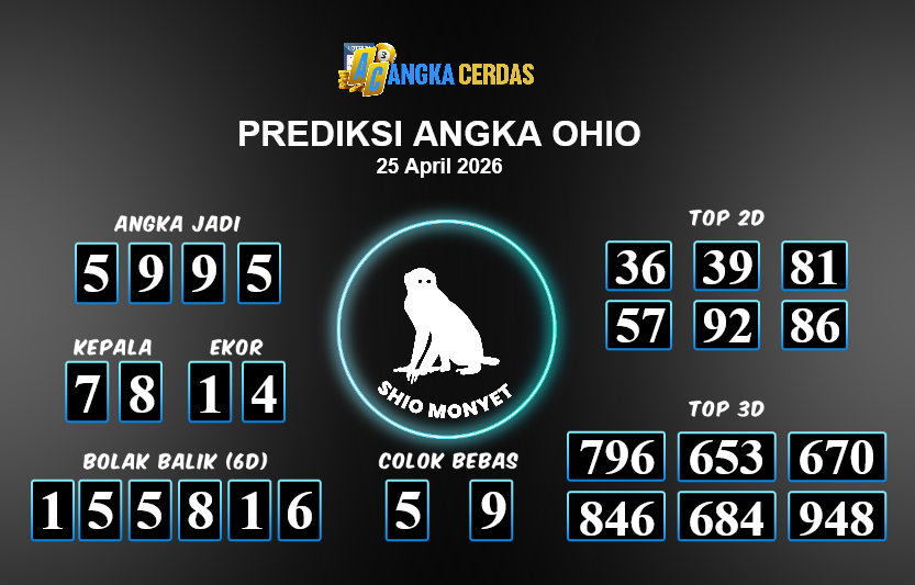 Prediksi Togel OHIO untuk hari ini Sabtu, 25 April 2026, adalah salahsatu jenis togel yang memiliki banyak penggemar.Ini terutama ditujukanbagi Anda yang menyukai 4d/3d/2d. Prediksi Angka Cerdas yang kamisediakan,bisa