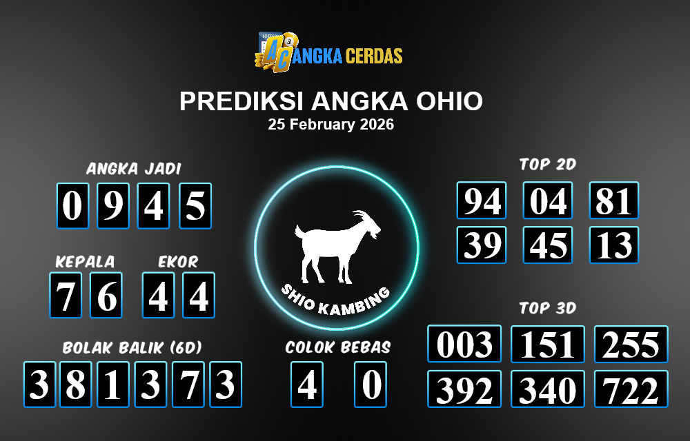 Prediksi Togel OHIO untuk hari ini Rabu, 25 Februari 2026, adalah salah