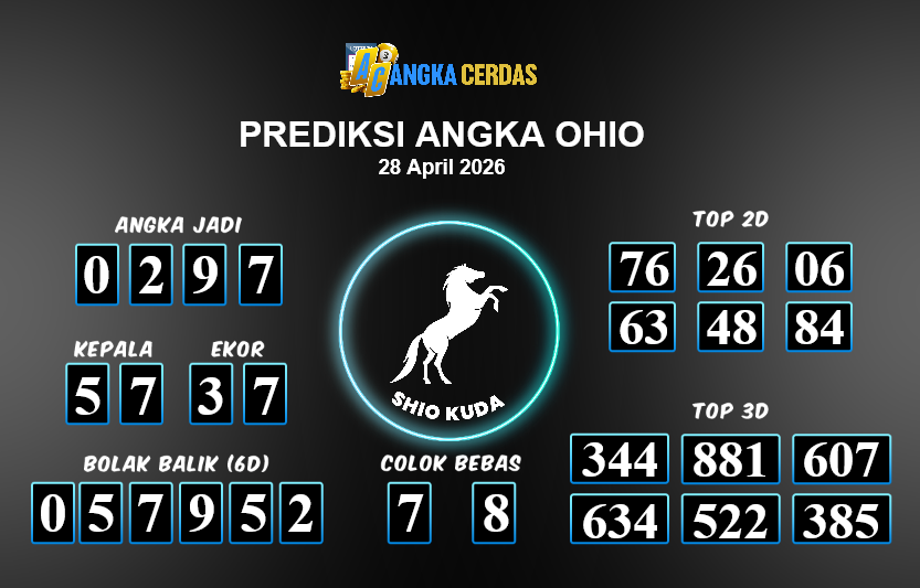 Prediksi Togel OHIO untuk hari ini Selasa, 28 April 2026, adalah salahsatu jenis togel yang memiliki banyak penggemar.Ini terutama ditujukanbagi Anda yang menyukai 4d/3d/2d. Prediksi Angka Cerdas yang kamisediakan,bisa