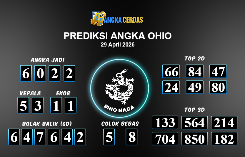 Prediksi Togel OHIO untuk hari ini Rabu, 29 April 2026, adalah salahsatu jenis togel yang memiliki banyak penggemar.Ini terutama ditujukanbagi Anda yang menyukai 4d/3d/2d. Prediksi Angka Cerdas yang kamisediakan,bisa