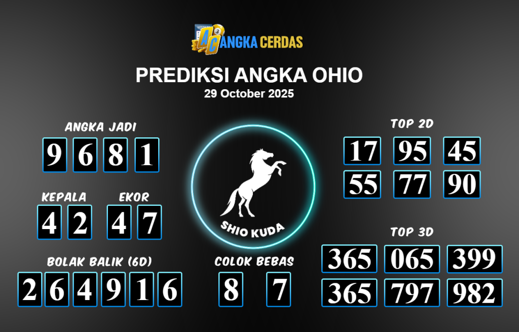 Prediksi Togel OHIO untuk hari ini Rabu 29 Oktober 2025, adalah salah