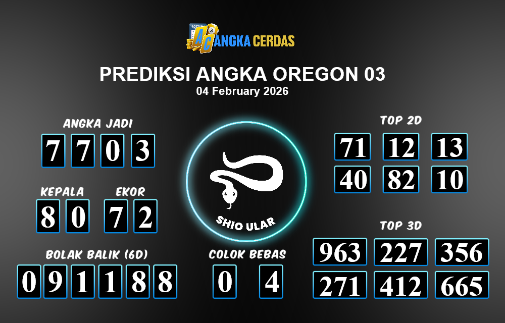 Prediksi Togel OREGON 03 untuk hari ini RABU, 04 Februari 2026, adalah salah