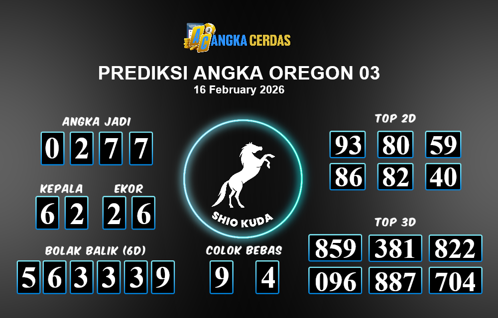 Prediksi Togel OREGON 03 untuk hari ini Senin, 16 Februari 2026, adalah salah