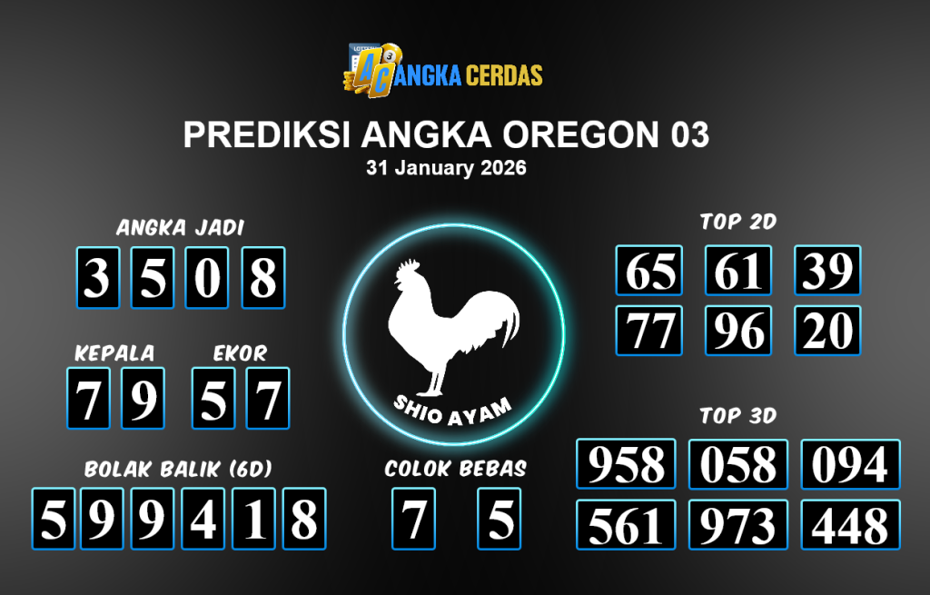 Prediksi Togel OREGON 03 untuk hari ini Sabtu 31 Januari 2026,adalah salah