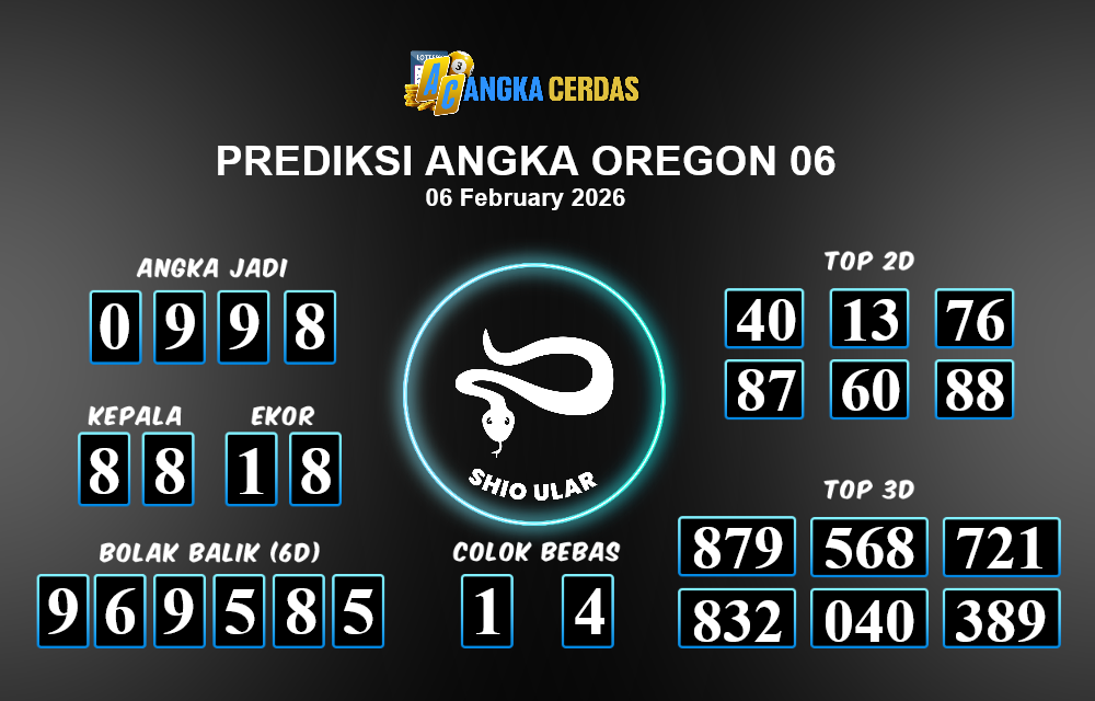 Prediksi Togel OREGON 06 untuk hari ini Jumat, 06 Februari 2026, adalah salah