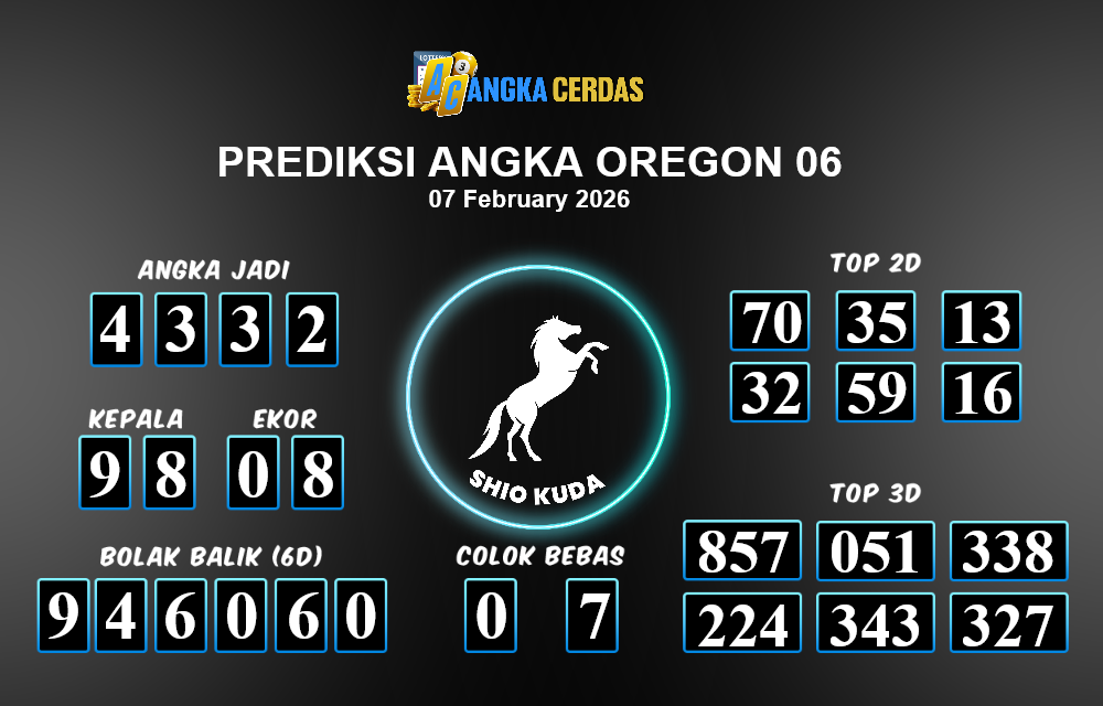 Prediksi Togel OREGON 06 untuk hari ini Sabtu, 07 Februari 2026, adalah salah