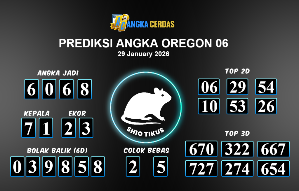 Prediksi Togel OREGON 06 untuk hari ini Kamis 29 Januari 2026,adalah salah